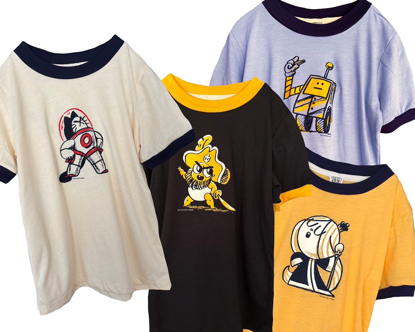 And today we just put some new shirts up in the First Cat in Space shop, including Captain Babybeard’s debut on a t-shirt. (What a sentence.)